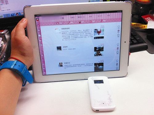 刚才顺便拿我的iPad也试着用MIFI上网了,速度相当快啊!看微博、看视频都相当神速喵~(这肥爪大概不是我的。)